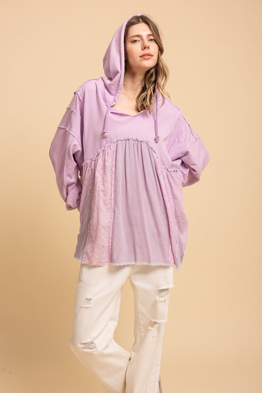 "Sweet Girl" Eyelet Babydoll Hoodie in Lavender