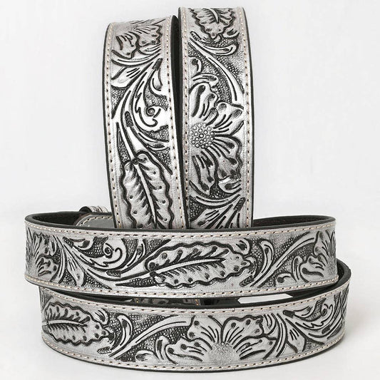 "Silver Sun" Hand-Tooled Silver Floral Western Leather Belt