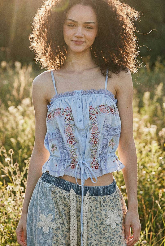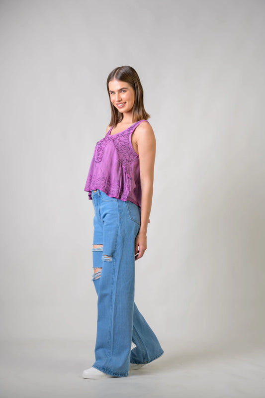 "Petticoat" Sleeveless Viscose Tank Top in Grey/Blue