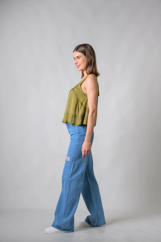 "Petticoat" Sleeveless Viscose Tank Top in Olive Green