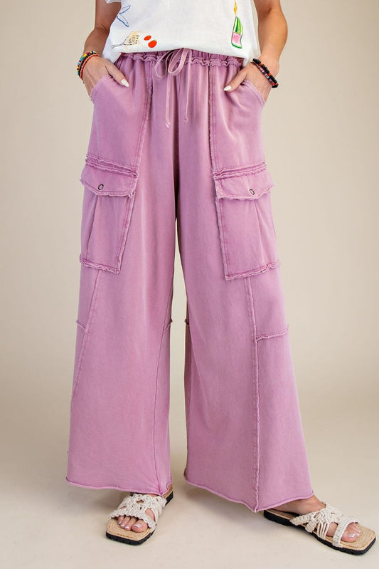 "Durango" French Terry Cargo Wide Leg Pants in Mauve