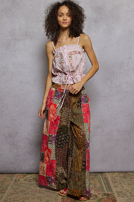 "Belle" Double Gauze Joggers in Ivory Pink Floral