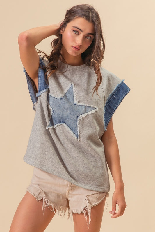 "American Star" French Terry Denim Top in Heather Gray