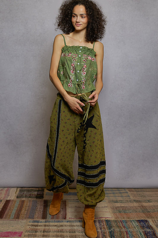 "Delight" Embroidered Poplin Top in Grass Green
