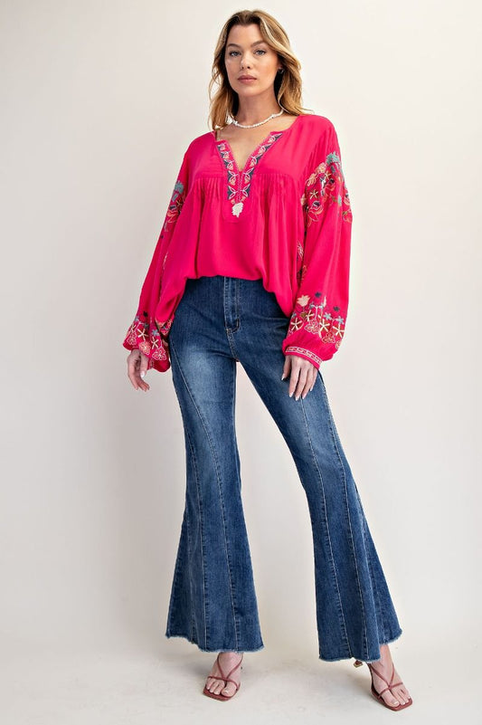 "Bianca" Embroidered Rayon Top in Fuchsia