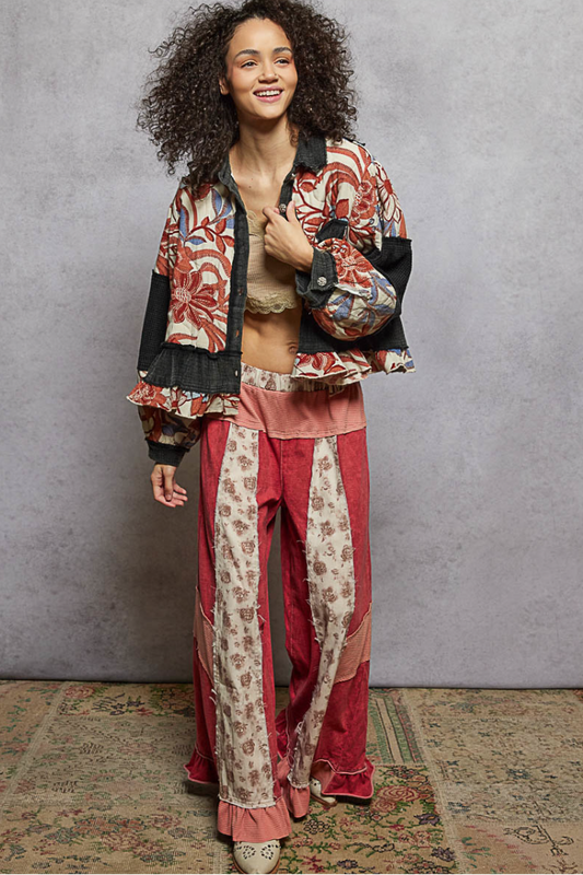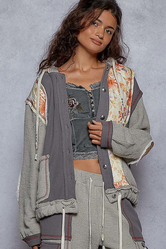 "Jennifer" Waffle Colorblock Floral Jacket