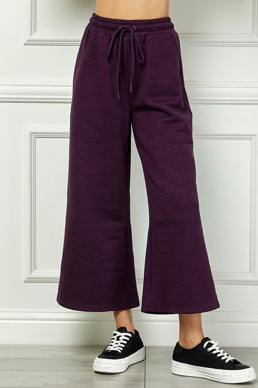 "Playtime" Textured Cropped Wide Leg Pants in Plum