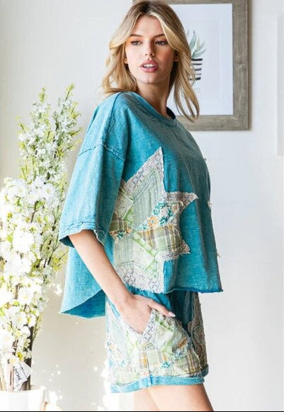 "Melanie" Soft Tee and Short Set in Dusty Teal