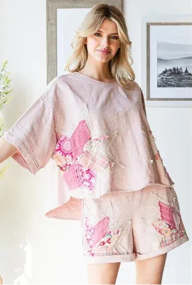 "Melanie" Soft Tee and Short Set in Lt Plum