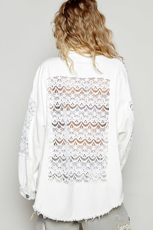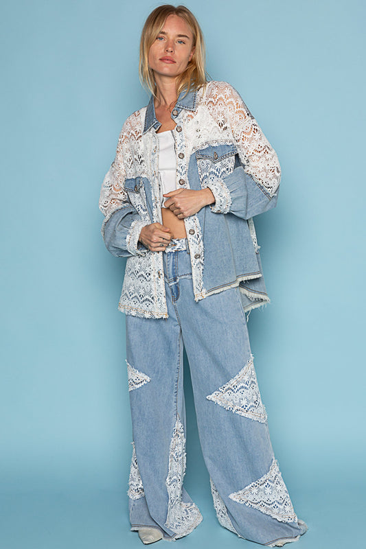 "Lace Rodeo" Lace and Denim Button Up Shirt Shacket