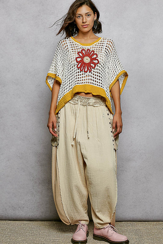 "Lady Daisy" Open Weave Sweater in Ivory/Gold