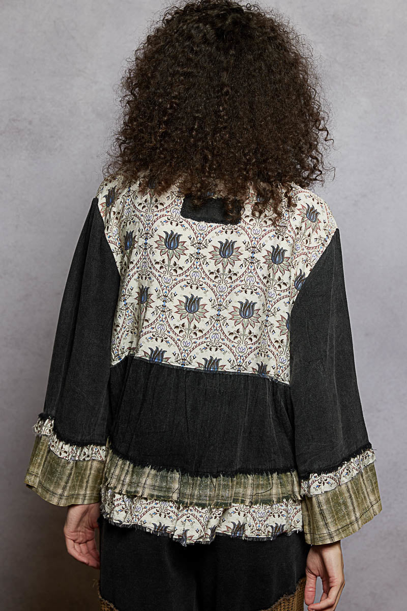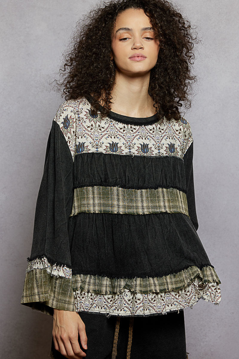 Meet your new go-to layering piece—a breezy rayon top with a rounded neckline and long sleeves that drape just right. Textured weaving and cascading ruffles create visual interest and movement, while the relaxed silhouette keeps things comfortable and effortless. Dress it up or down for that laid-back boho energy.