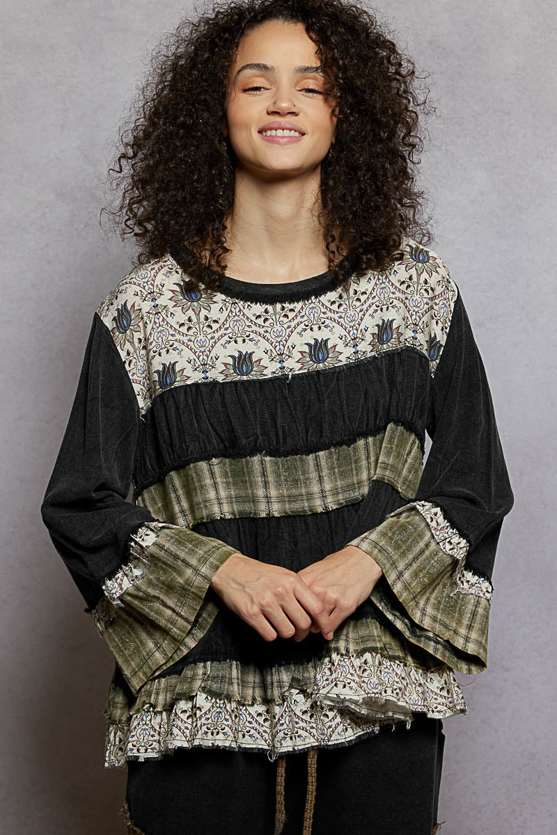 "Layla" Ruffled Tiered Top in Black